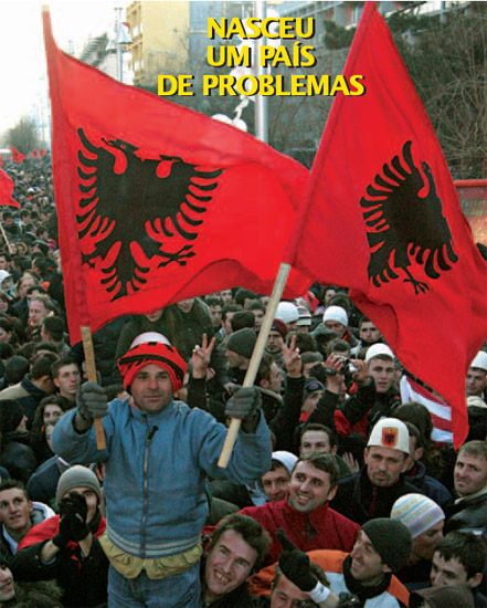 A fotografia mostra uma das muitas cenas que ontem abundavam no auto-declarado estado do Kosovo. As bandeiras (ainda que as antigas) davam a cor e o contraste e a rapariga às cavalitas representava a alegria de um jovem povo que se via independente. E blá-blá-blá, blá-blá… Mil ilações…